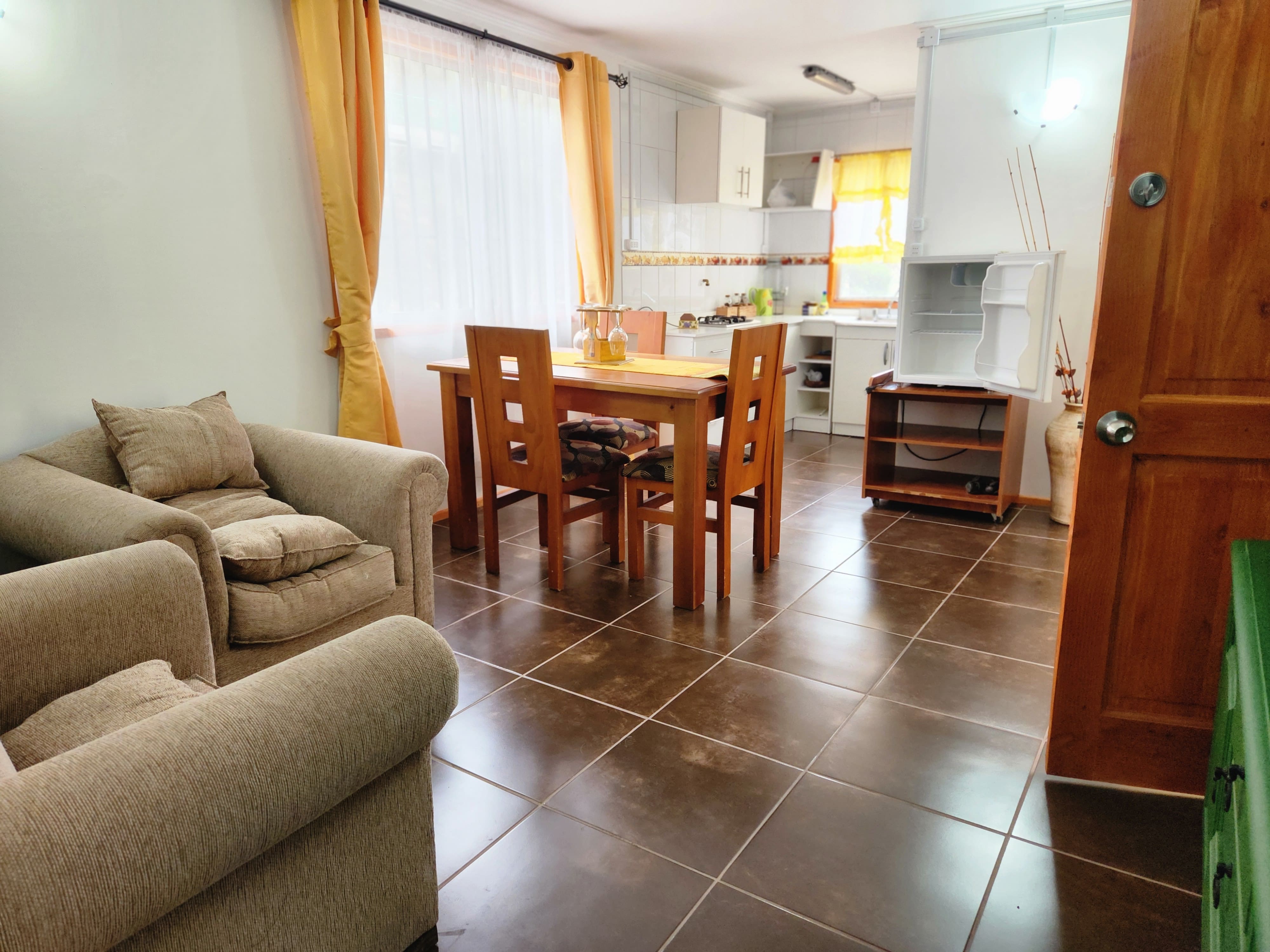 Linda casa en muy buen estado. Amoblada. Un dormitorio y un baño, cocina americana, living y comedor. Patio trasero y estacionamiento. Para personas sola o una pareja.
